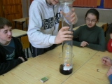 Uczniowie badali również skład powietrza atmosferycznego. Zapoznali się z pojęciem ciśnienia. Zostawiany ślad na piasku przez położoną cegłę w różnych położeniach pozwolił na zaobserwowanie, że skutek nacisku na podłoże ciała o określonym ciężarze zależy od wielkości powierzchni zetknięcia ciała podłożem. Ćwiczenia dotyczyły również zamiany jednostek ciśnienia i przekształcania wzorów.