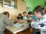 Poruszane są istotne problemy światowe- problem deficytu wody, degradacji środowiska, terroryzmu. Rozszerzane są też zagadnienia z zakresu geografii fizycznej- ziemia we wszechświecie, archipelagi wysp na świecie, dokonaliśmy przeglądu półwyspów europejskich, azjatyckich i afrykańskich. Wiele zajęć, jak tylko pogoda na to pozwala, przeprowadzamy w terenie. Gramy w gry geograficzne, jest wesoło i sympatycznie.