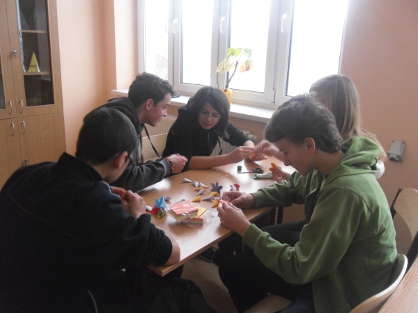 W grudniu na zajęciach klubu uczestnicy zajęć poznawali tajniki rozwiniętej w Japonii sztuki składania papieru - orgiami. Poprzez odpowiednie składanie kartki papieru można otrzymać naprawdę ciekawe figury przestrzenne. Jak na razie stawiamy pierwsze kroki i wykonaliśmy kwiaty, ale to dopiero początek.