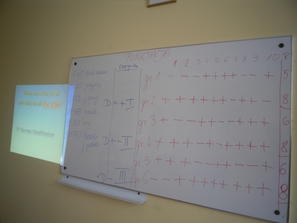 Nauczyciele prowadzący zajęcia przygotowali pytania konkursowe, które były związane z treściami realizowanymi na zajęciach projektowych. Uczniowie zostali podzieleni na sześć rywalizujących ze sobą grup. Każda z nich odpowiadała na dziesięć pytań.
