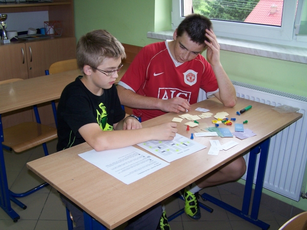 Na zajęciach Klubu Matematyczno - Fizycznego uczniowie poszerzali swoją wiedzę oraz doskonalili umiejętności nabyte w czasie lekcji matematyki. Ćwiczyli umiejętności, terminy, pojęcia matematyczne podczas gier planszowych, rozwiązywania krzyżówek oraz rozwiązywania zadań o podwyższonym stopniu trudności. Rozwiązywali zagadki logiczne, rysunkowe, układali domino, memory matematyczne. Poszukiwali różnych strategii rozwiązania tego samego zadania. Zapoznali się z zagadnieniami związanymi z funkcjonowaniem banku poprzez bezpośrednie doświadczenie. Przygotowali plansze reklamowe, ulotki dotyczące lokat długoterminowych oraz zasad oprocentowania kredytów. A następnie wcielili się w role pracowników i klientów banku. Budowali i uzupełniali kwadraty magiczne, tangramy, rozwiązywali równania a także układali treść do podanych równań. Nauczyli się wzorów skróconego mnożenia i ich zastosowania w zadaniach. Dowiedzieli się co to jest złota liczba i jak wykonać jej konstrukcję. Oglądali anaglify za pomocą specjalnych okularów do obrazów trójwymiarowych. Zapoznali się z sytuacjami dydaktycznymi i przykładami zadań, w których dobierali lub budowali modele matematyczne danej sytuacji. Przy tej okazji prowadzili proste rozumowania i podawali argumenty uzasadniające poprawność rozumowania.