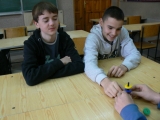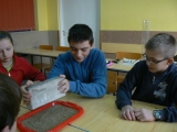 Uczniowie badali również skład powietrza atmosferycznego. Zapoznali się z pojęciem ciśnienia. Zostawiany ślad na piasku przez położoną cegłę w różnych położeniach pozwolił na zaobserwowanie, że skutek nacisku na podłoże ciała o określonym ciężarze zależy od wielkości powierzchni zetknięcia ciała podłożem. Ćwiczenia dotyczyły również zamiany jednostek ciśnienia i przekształcania wzorów.