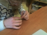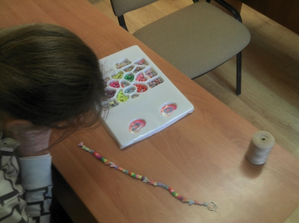 Zajęcia z pedagogiem w ramach zadania \"Nie jesteśmy sami\" skupiają się na ćwiczeniu i wspomaganiu zaburzonych funkcji. Np. uczennica usprawnia funkcje percepcyjno-motoryczne przy użyciu prostych przedmiotów.