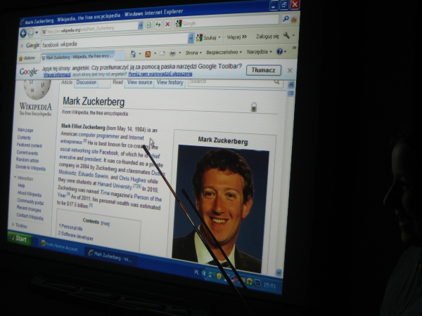 W grudniu uczestnicy projektu Lubię swoją szkołę na zajęciach z języka angielskiego wykorzystując sprzęt multimedialny oraz strony internetowe poszukiwali informacji o Facebooku i jego twórcy. Temat zajęć „co wiemy o facebooku” okazał się trafny gdyż rozbudził wśród uczniów chęć do podjęcia dyskusji na temat założyciela największego i najbardziej popularnego portalu społecznościowego. Nowe informacje przyczyniły się do stworzenia przez uczestników quizu, który to będzie zamieszczony w szkolnej gazetce-Express szkolny. Na kolejnych grudniowych zajęciach uczestnicy projektu bardzo chętnie podeszli do realizacji tematu związanego z Unią Europejską- a nasza wiedzą na jej temat. Pomimo trudnego języka urzędowego szczere chęci uczniów do poznania tematu, a także dostęp do stron internetowych i słowników pomogły im zrozumieć zagadnienia dotyczące krajów Unii. Wiedza ta przedłożyła się również do stworzenia quizu o krajach UE.