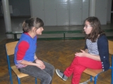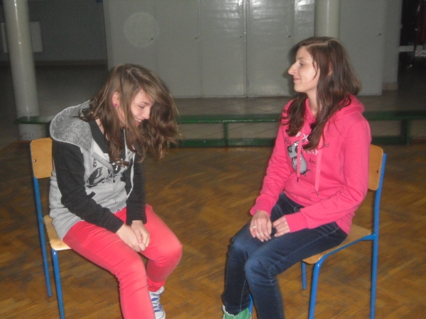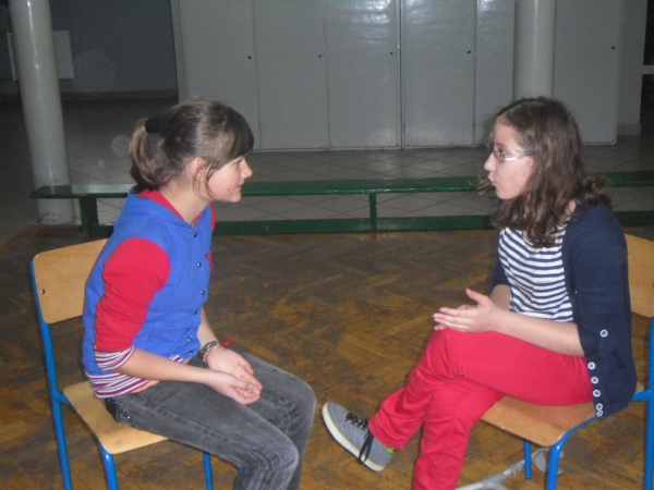 W trakcie zajęć teatralnych w dniu 5 listopada 2012 r. uczestnicy ćwiczyli „wprawki” aktorskie, które miały na celu naukę modulacji głosu i zmianę barwy głosu w zależności od wieku granej postaci i jej obecnego stanu emocjonalnego. Szczególnie dużo radości sprawiły wszystkim ćwiczenia w parach. W ich trakcie młodzież miała za zadanie przedstawić dialogi ukazujące konkretne emocje z użyciem wyznaczonych grup wyrazów takich jak: nazwy zwierząt, nazwy roślin, zawody, kolory.